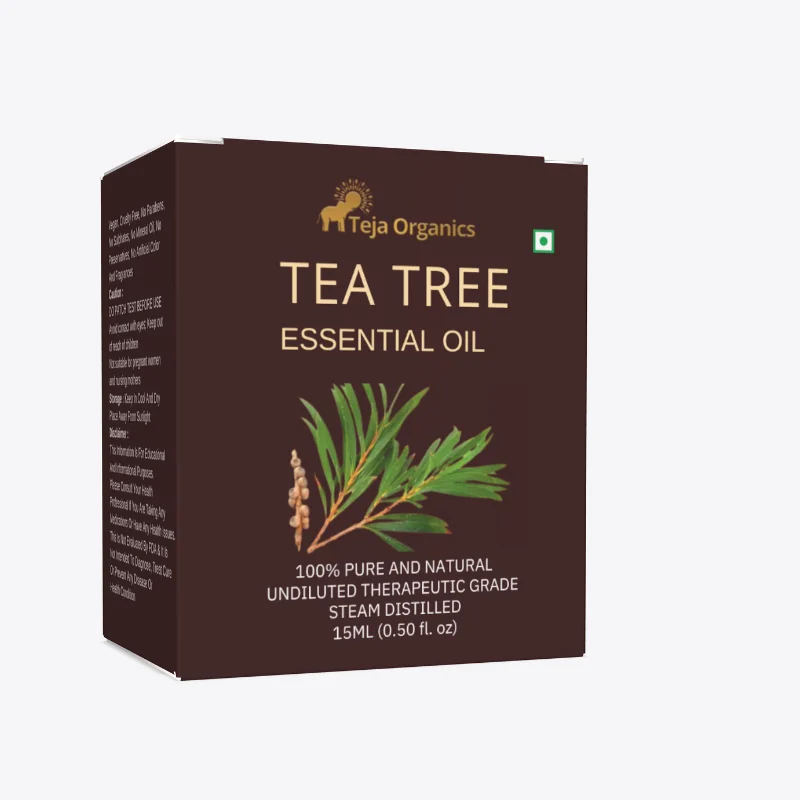 Teja Organics Tea Tree Essential Oil is a powerful natural oil known for its cleansing and purifying properties.Extracted from tea tree leaves, this oil is widely used for acne care, scalp health, and skin purification. It helps reduce the appearance of pimples, control excess oil, and maintain a clean scalp environment. Its refreshing herbal aroma also makes it suitable for aromatherapy and home wellness use.